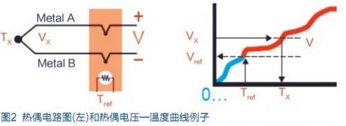 不過,電壓和溫度間是如圖2所示的非線性關(guān)系,溫度由于電壓和溫度是非線性關(guān)系,因此需要為參考溫度(Tref)作第二次測量,并利用測試設(shè)備軟件和∕或硬件在儀器內(nèi)部處理電壓-溫度變換,以最終獲得熱偶溫度(Tx)。Agilent34970A和34980A數(shù)據(jù)采集器均有內(nèi)置的測量了運算能力。