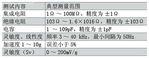 現在市場上研發的汽車爆震傳感器測試系統功能完善,性能穩定可靠,操作簡單,測試精度高,測試速度快,可滿足傳感器生產線上長時間、大批量生產測試的需要。針對壓電式爆震傳感器結構形式多樣的特點,系統采用傳感器適配接口模塊化設計,適合多種壓電式爆震傳感器的檢測,系統的測試范圍如表所示。目前這些測試系統已成功應用于西門子壓電式爆震傳感器生產線上的終檢測試。
