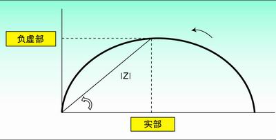 常用的方法是將產生的阻抗與頻率的關系曲線作為數據分析的一部分。當頻率在給定的范圍內掃頻時,奈奎斯特(Nyquist)圖是在復數平面內以傳遞函數的實部和虛部為參數的曲線。如果圖中的x軸表示實部,y軸表示虛部(注意:y軸取負數),就可以得到每個頻率點的阻抗表示。換句話說就是,曲線上的每個點都代表了某個頻率點的阻抗。可以從向量長度|Z|和該向量與x軸之間的夾角?計算出阻抗。圖1為電阻器和電容器并聯時的典型奈奎斯曲線。