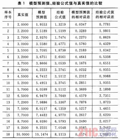 為了驗(yàn)證測(cè)試結(jié)果的可靠性,根據(jù)網(wǎng)絡(luò)訓(xùn)練的結(jié)果,把測(cè)試結(jié)果與真實(shí)值進(jìn)行對(duì)比。為了突出該方法的優(yōu)越性,與經(jīng)驗(yàn)公式計(jì)算出來(lái)的距離值進(jìn)行比較。表1為模型預(yù)測(cè)值、經(jīng)驗(yàn)公式值與真實(shí)值的比較。