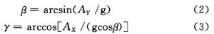 當加速度計被定向,那么它的X和Y軸就和地球表面平行可用來作為具有翻滾和傾斜兩個軸的雙軸斜度傳感器,被測物體的俯仰角記為γ和橫滾角β。將磁阻傳感器的3個敏感軸沿載體的3個坐標軸安裝,分別測量地磁場磁感應強度H在載體坐標系3個坐標上的投影分量(HX,HY,HZ),然后利用俯仰角和橫滾角進行姿態解算就可以得到電子羅盤的方位角。