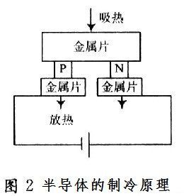 把一個N型和P型半導體的粒子用金屬連接片焊接成一個電偶對。當直流電流從N極流向P極時,上端產生吸熱現象,此端稱冷端,下端產生放熱現象,此端稱熱端,如果電流方向反過來,則冷熱端相互轉換。