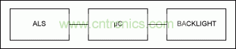 圖1是實施背光控制的系統示范框圖。在這套組合中,光傳感器是關鍵的組成部分,因為它要向系統的其他模塊提供環境光強信息。光傳感器必須具備將光信號轉換成電信號的信號轉換器(譬如光電二極管或CdS光敏電阻)和信號放大和/或調節裝置以及模/數轉換器(ADC)。