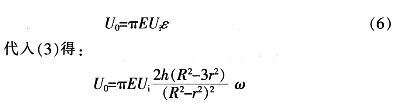 式中:μ為硅材料的泊松比,μ=O.35;R,r,h分別為硅膜片的有效半徑,計算半徑,厚度;E為硅材料的模量,E=8.7Gpa;P為作用于平膜片上的壓力;ω為平膜片的撓度;
