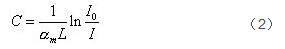 式中 為摩爾分子吸收系數(shù);C 為待測氣體濃度;L 為光和氣體的作用長度(傳感長度)。對上式進行變換得: