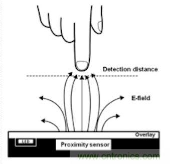 圖1:此圖說明了一個典型的電容式接近傳感器系統[page]