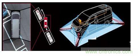 環(huán)視攝像頭,或稱為全景式影像監(jiān)控系統(tǒng),能將汽車頂部各個方向鳥視畫面拼接起來,并動態(tài)顯示在車內(nèi)的液晶屏上;此外,環(huán)視攝像頭還能識別停車通道標(biāo)識、路緣和附近車輛。一些最高級的環(huán)視影像系統(tǒng)配合聲納使用可以發(fā)出實時預(yù)警,提醒駕駛員和障礙物靠得太近。