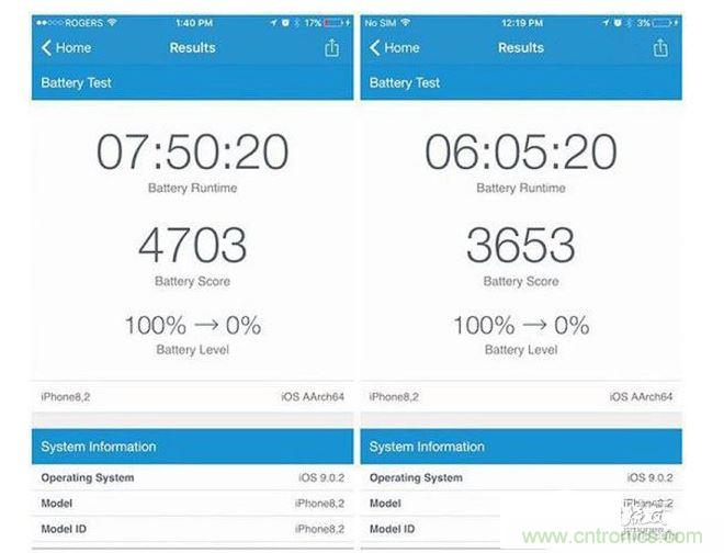【導讀】最近,多家外媒對兩個版本的A9芯片進行了續航方面的測試,發現臺積電16nm芯片要比三星14nm芯片續航更長一些,甚至有Reddit用戶專門使用Geekbench 3進行了測試,結果發現臺積電A9芯片的續航要比三星代工的A9芯片多出近兩個小時。