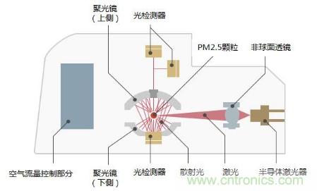 空氣質(zhì)量傳感器通過調(diào)整各部位的配置實現(xiàn)了小型化,最小檢測粒徑可以達到0.3μm。