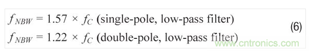 若系統需要定制濾波,其頻率響應 (HDF(f)) 不符合公式6和7中的簡單單極點和雙極點模型,則可利用公式8提供的更一般關系來預測總噪聲: