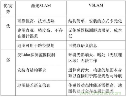 由于傳感器種類和安裝方式的不同,SLAM 的實現方式和難度會有一定的差異。按傳感器來分,SLAM 主要分為激光 SLAM 和 VSLAM 兩大類。其中,激光 SLAM 比 VSLAM 起步早,在理論、技術和產品落地上都相對成熟?;谝曈X的 SLAM 方案目前主要有兩種實現路徑,一種是基于 RGBD 的深度攝像機,比如 Kinect;還有一種就是基于單目、雙目或者魚眼攝像頭的。VSLAM 目前尚處于進一步研發和應用場景拓展、產品逐漸落地階段。