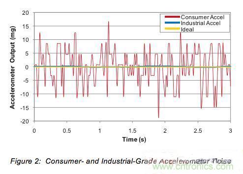 圖2:消費級和工業級加速度計噪聲。