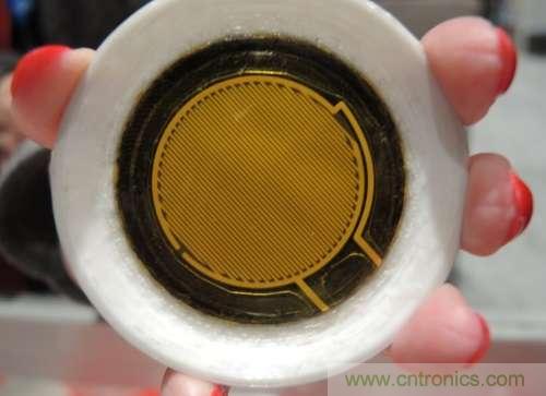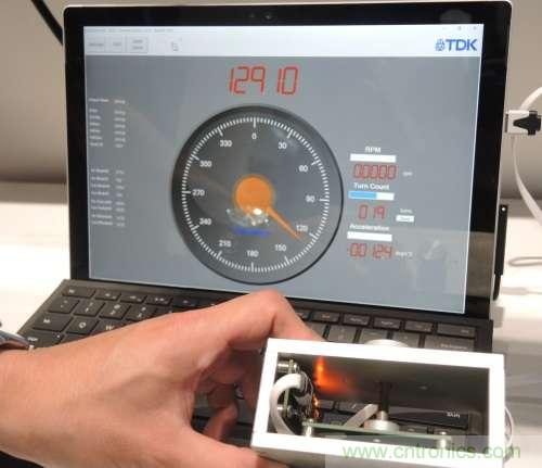 TDK展示其最新的穿隧磁阻(TMR)傳感器。360°角度傳感器可提供0.2度以內的定位,預計將在今秋出樣,其成本據稱不到1美元。