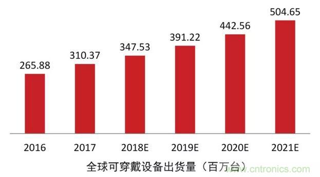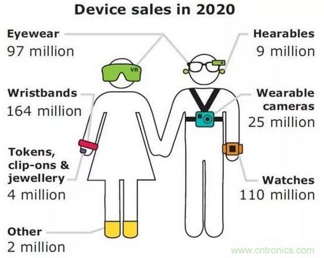 各類可穿戴設備市場的預測示意圖