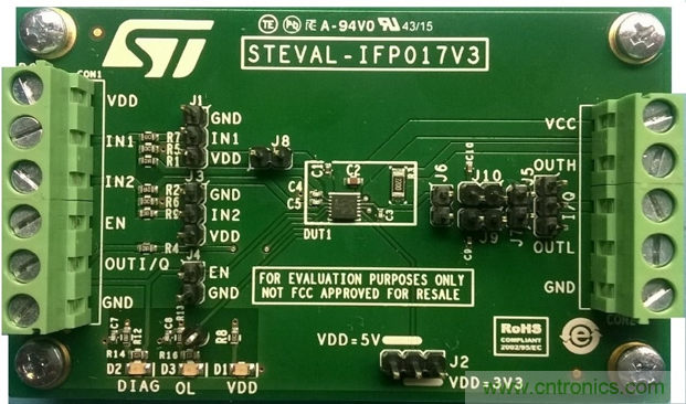 圖5:STEVAL-IFP017V3演示板,用于測試L6362A的阻容和電感負載驅動能力