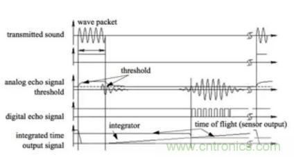 超聲波傳感器的基本原理是測量超聲波的飛行時間,通過d=vt/2測量距離,其中d是距離,v是聲速,t是 飛行時間。由于超聲波在空氣中的速度與溫濕度有關,在比較精確的測量中,需把溫濕度的變化和其它因素考慮進去。