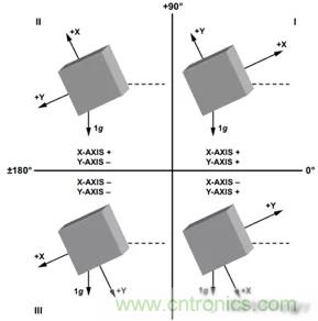 圖2:不同象限與加速度輸出值正負的關系