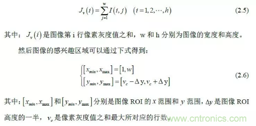 通過觀察圖像看出,激光條紋大致平行于圖像的u 軸,而且激光條紋處像素的灰度值高于圖像中其它像素的灰度值,所以圖像的ROI 可以通過對每行像素灰度值進行求和得到: