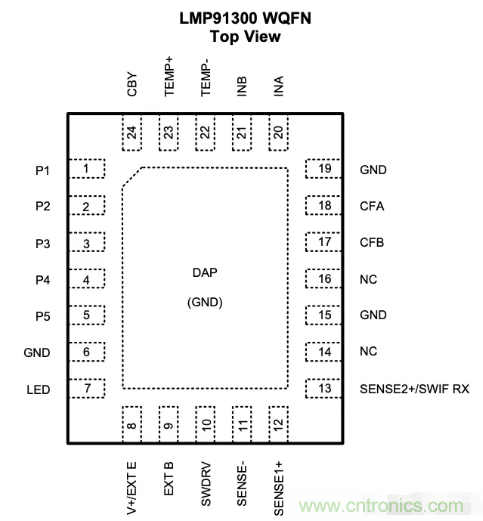 LMP91300采用4mm x 5mm 24端子WQFN和2.05mm x 2.67mm 20端子DSBGA封裝,工作溫度范圍為–40°C至+ 125°C。