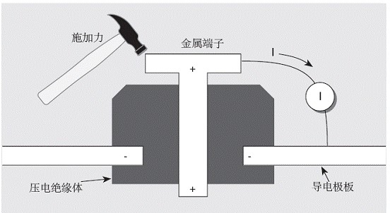 某些晶體材料用作絕緣端子和連結件時,若向其施加機械應力,就會產生壓電電流。在某些塑料中,電荷的儲存使該材料的性質類似于壓電材料。壓電絕緣體的端子示于圖1。